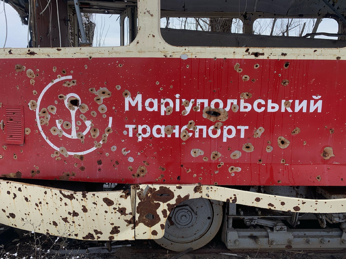 Совсем недавно я вернулся из поездки, цель которой - гуманитарная помощь, отвезти посылки от родных и друзей, мобилизованным военнослужащим на территорию где проходит СВО. Наш маршрут проходил через Мариуполь, город, где с февраля по май 2022 года проходили ожесточенные бои с противником (неонацисты из батальона «Азов»), который укрепился в городе и препятствовал выводу гражданского населения. 2 марта 2022 года движение трамваев в городе было полностью остановлено в связи с боевыми действиями в городе, были разрушены трамвайные пути, а трамваи пригнали в Депо, где казалось они будут в безопасности. Всего в Мариуполе три трамвайных депо, говорят, что в некоторых из них сохранились трамваи в целостности. Мы проезжали мимо Депо № 2 КП МТТУ, вдоль него проходит главная дорога если ехать от Москвы по М4 Дон, и здесь трамваям досталось сильно. Свезенные сюда трамваи неподвижно замерли на путях под открытым небом с сильными повреждениями корпуса и салона. Депо подверглось мощному обстрелу,