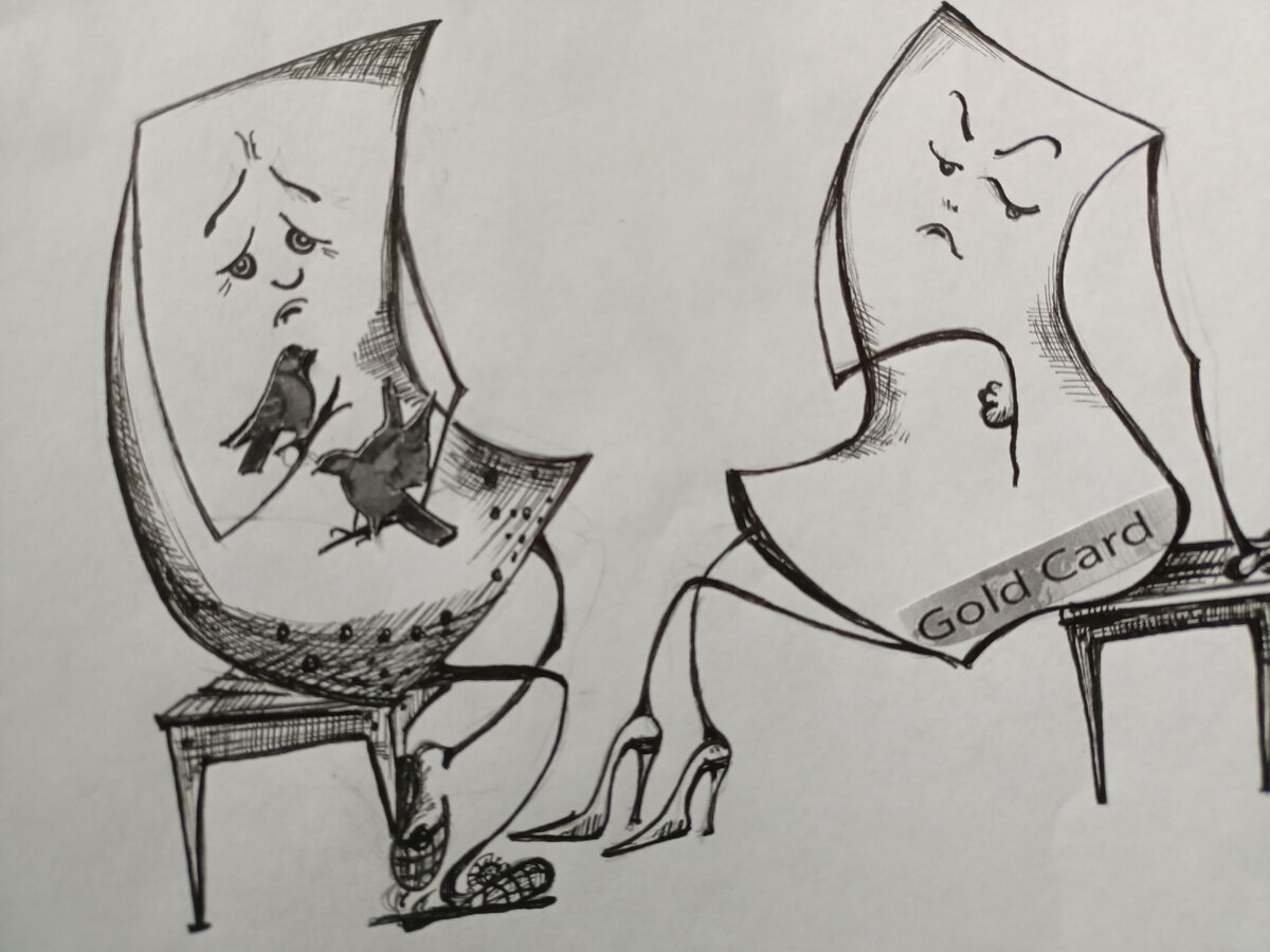 — Ой, они долго говорят! Сначала о погоде, потом о детях и внуках. Здесь я их еще слушаю, но когда начинают обсуждать свои бесконечные болезни, я не выдерживаю, засыпаю. Просыпаюсь обычно под пенсионные разговоры. Ну а вы, Золотая Карточка, как живете, на полочке долго лежите?
