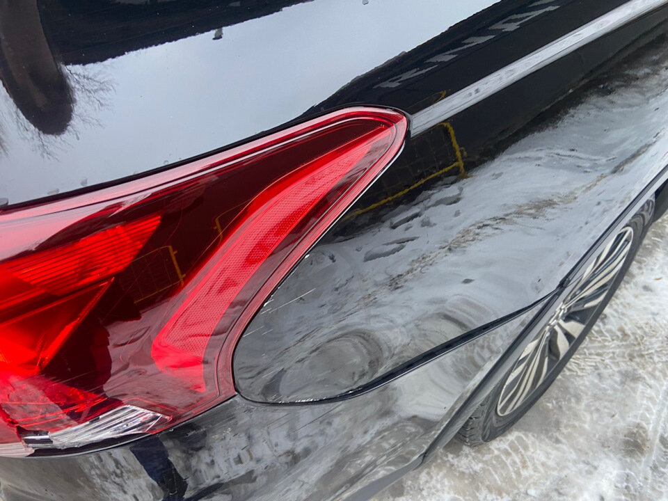 Правое заднее крыло машины помяли.
