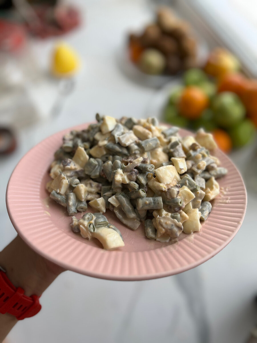 Раньше делала этот салат немного по-другому, без майонеза и авокадо, в качестве заправки я брала орехи, перематывала их в блендере с лимоном и водой, а фасоль я обжаривала и к ней добавляла чеснок. Оба варианта хороши, но с майонезом и авокадо жирненее и сытнее. Такой салат хорош сам по себе, без хлеба. А у вас есть любимый рецепт ПП салата, поделитесь?