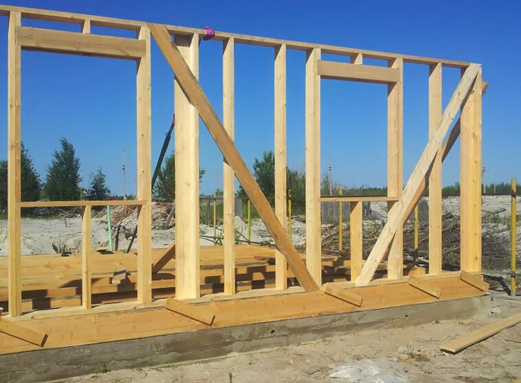 - Первый способ - это укосины в каркасе стены. Это надёжный способ, проверенный сотнями лет. Но здесь важно сделать укосины правильно. Многие строители заявляют, что укосин недостаточно для восприятия ветровой нагрузки. Но это заблуждение основано на том, что многие строители делают укосины неправильно. Как сделать укосины правильно, я рассказал здесь.