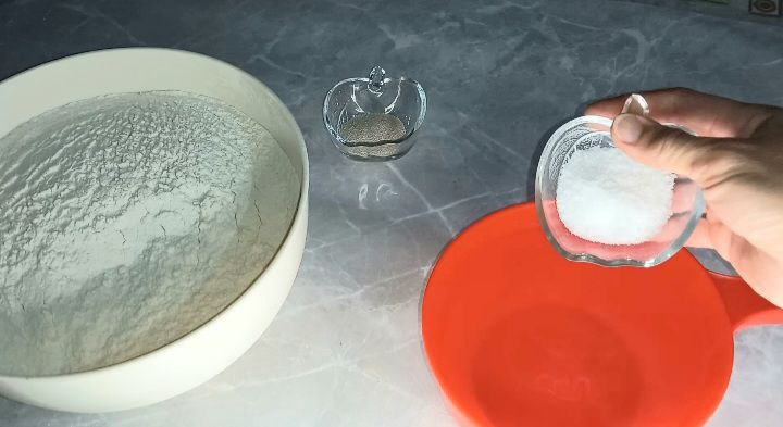 Люди привыкли к хлебу, как к обычному угощению и особо не придают этому значения. А ведь едят его каждый день многие на разных уголках планеты. Хлеб ведь - всему голова! Немного истории - боле 5000 тысяч лет назад появился первый хлеб в Древнем Египте. Раб отвечавший за приготовление хлеба просто забыл около печи смесь воды и крупы из за чего смесь забродила, и он испугался, что его накажут, решает испечь ту забродившую смесь. Конечно результат превзошел ожидания, так появился первый мягкий, пористый хлеб на закваске. А теперь расскажу, как я готовлю хлеб. Для начла просеиваю муку, добавляю сухие дрожжи и перемешиваю.