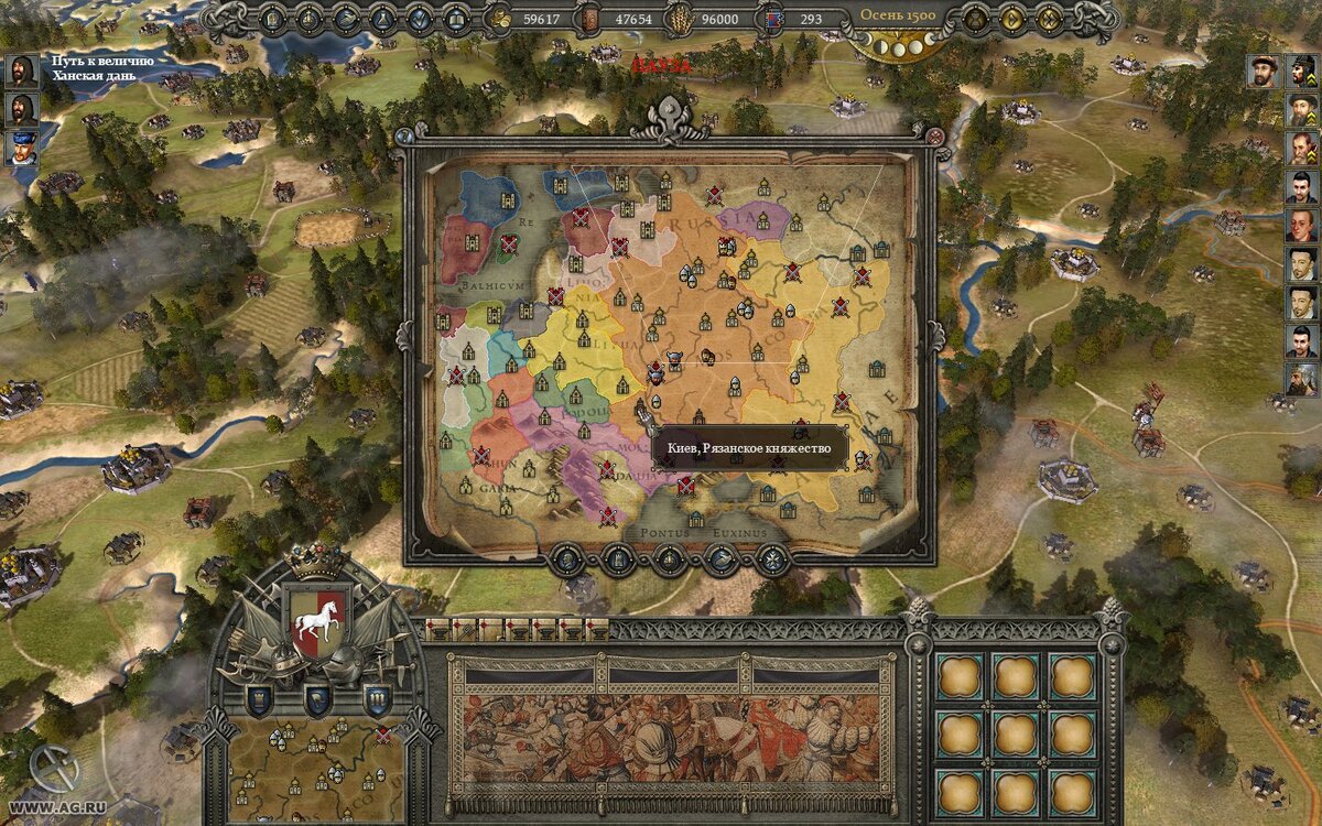Десятки реально существовавших исторических личностей и сотни игровых персонажей с разными специальностями: правители, наместники, полководцы, священники, алхимики и шпионы. В общем эта игра очень похожа на рыцарей чести, но более сложная и с большим количеством кнопочек и различных счётчиков.