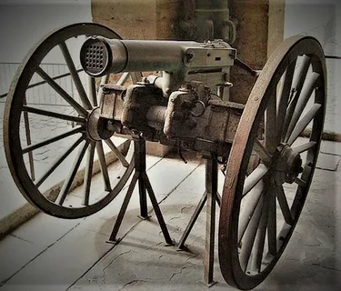 Всем привет! Я - Сударь Мотриков, и сегодня выходит статья на обещанную мной тему. Под статьей про франко-прусскую войну Вы набрали 20 лайков, хотя для продолжения я просил лишь 14. Ну если Вам так это нравится - то погнали! Все началось еще в период 1850-1870 годов. Тогда для гладкоствольных орудий на дистанции до 600 метров основным видом снаряда была картечь. Нарезные орудия картечью стреляли плохо - жестяной цилиндр с пулями разрушался при трении о нарезы. Военные искали орудие, способное поражать пехоту на близких дистанциях. Именно поэтому в 1851 году бельгиец Ш. Монтиньи создал многоствольное орудие, стрелявшее винтовочными патронами, вскоре принятое на вооружение Франции. Митральеза, предшественница пулемета, заряжалась поддоном на 25 патронов и стреляла залпом из всех стволов. Винтовой затвор позволял сменить отстрелянный поддон на новый всего за несколько секунд. Однако конические винтовочные пули в отличии от круглой картечи, летели кучно: один вражеский солдат мог получит