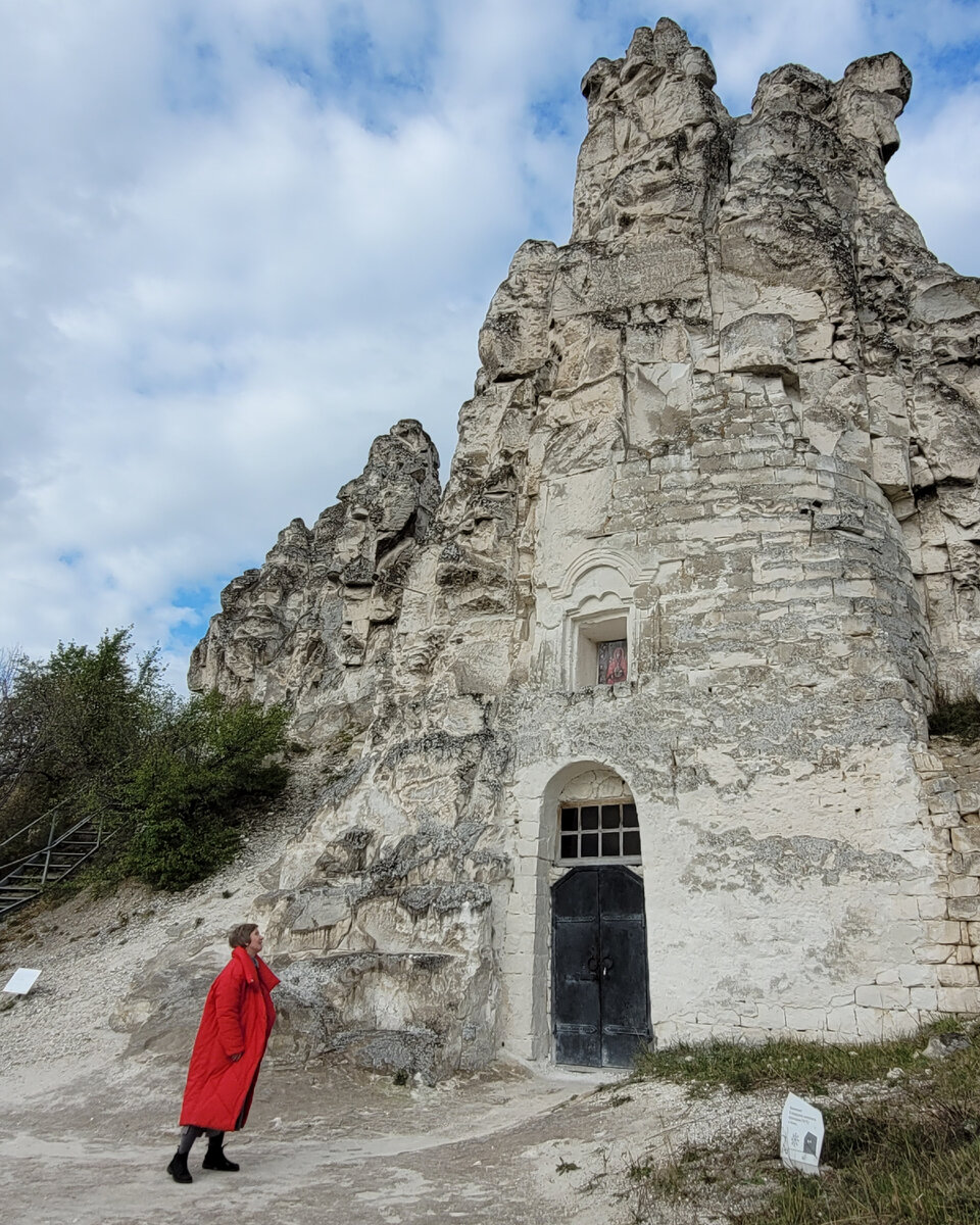 церкви Сицилийской иконы Божией матери. Храм выдолблен целиком в меловой горе. Представляет собой два яруса. Наверху жилые и хозяйственные помещения. Внизу, собственно, церковное пространство с галереей вокруг. Любопытно, что на стенах зелёный налёт... ...и это не плесень. Как считают учёные — самые настоящи