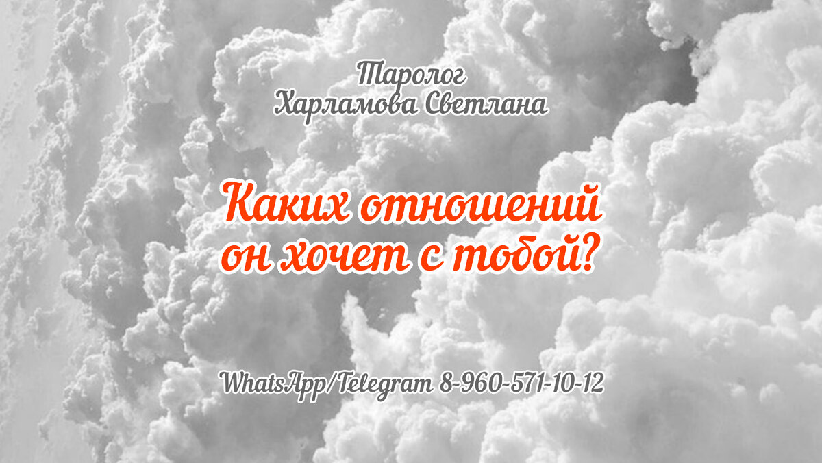 Дорогие, мои слушатели и читатели, огромное спасибо, что вы со мной. Я это очень ценю и для меня это очень важно! Мой канал существует благодаря вам и моим усилиям. Всем очень благодарна за ваши лайки, комментарии и донаты, пусть вам вернется в разу больше, чем вы мне отдаете. Самое главное конечно это ваше и мое драгоценное время, которое мы тратим на видео и посты, а я в свою очередь на их создание. Хочу сказать, что на самом деле на моем канале все же очень адекватные люди, что меня очень радует. Желаю всем любви и процветания! Для личного расклада: WhatsApp/Telegram 8-960-571-10-12 Интуитивно выберите одну из 3 позиций. 1. Мужчина хочет с вами дружеских отношений, веселого время провождения и желательно в тайне, думает он. На самом же деле вы для него шанс на любовь от которого он уходит и решает все поменять. Он сомневается сам, потому что находиться в апатии и вспоминает старое. Ему тяжело принять то, что он недооценивает сам себя. У него есть много желаний в вашем отношение, но