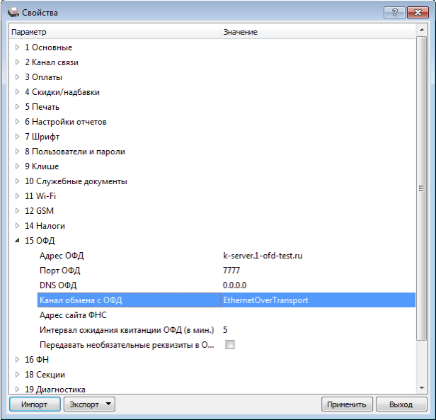 - LIBFPTR_OFD_CHANNEL_NONE - не активировать обмен с ОФД средствами драйвера.