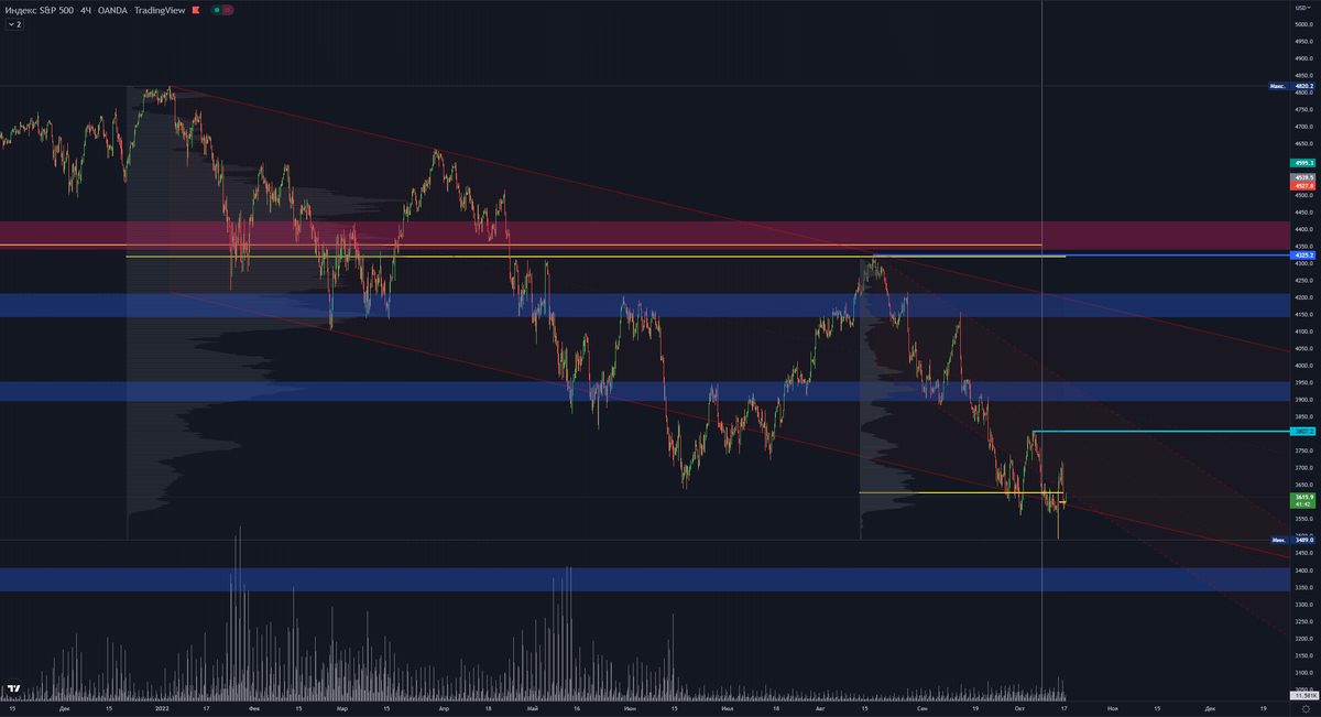 На выходе данных по инфляции в США 13 октября сделали перелой, тем самым продолжив шортовую тенденцию. Слом тренда = пробой уровня 3807.2. 2. Индекс российского рынка - IMOEX Глобальный тренд: нисходящий