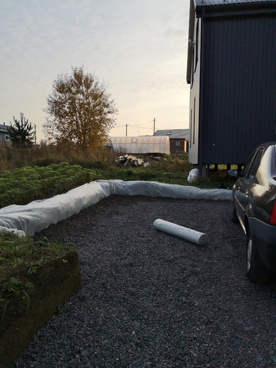 Если не продумать все заранее, с огромной вероятностью будут переделки. Вот и у меня пошел процесс немного задом на перед. Летом не сделали место под парковку: Но на фото видно, что у парковки есть весьма внушительны борт, который уже в сезон дождей начал свое движение вниз. Я долго размышляла - из чего сделать подпорную стенку. Был вариант - габионы. Но площадка выполнена по уклону и для установки габионов в один уровень придется откапывать траншею ближе к дому. Ну или делать габион по индивидуальным размерам. После долгих поисков решила сделать подпорную стенку из оставшихся после стройки досок, которые будут крепиться к столбикам, и иметь якоря в грунт. И вот на прошлой неделе мне пришлось откапывать по границе щебень и застилать откос геотекстилем. Вроде и не сложная работа, но и избежать ее было возможно. На следующей недели поеду ставить столбики... #загородныйдом #садовыйучасток #загородноестроительство #загороднаяжизнь Если вам понравилось, ставьте 👍 и подписывайтесь! С удов