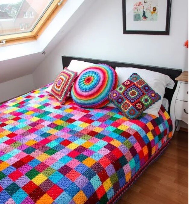 Очень часто после шитья каких-либо вещей остаются кусочки разных тканей, их выбросить жалко, а что-то большое и цельное сшить с них невозможно. Тогда людям пришла идея шить покрывала из лоскутков, называется это «пэчворк». В этой технике можно делать одеяла, покрывала, подушки, ковры и даже пано. Варианты исполнения есть как для новичков, где кусочки тканей сшиваются под разными углами, так и для продвинутых пользователей, когда в работу подключается еще и стежка – в общем, есть развитие в этой сфере.