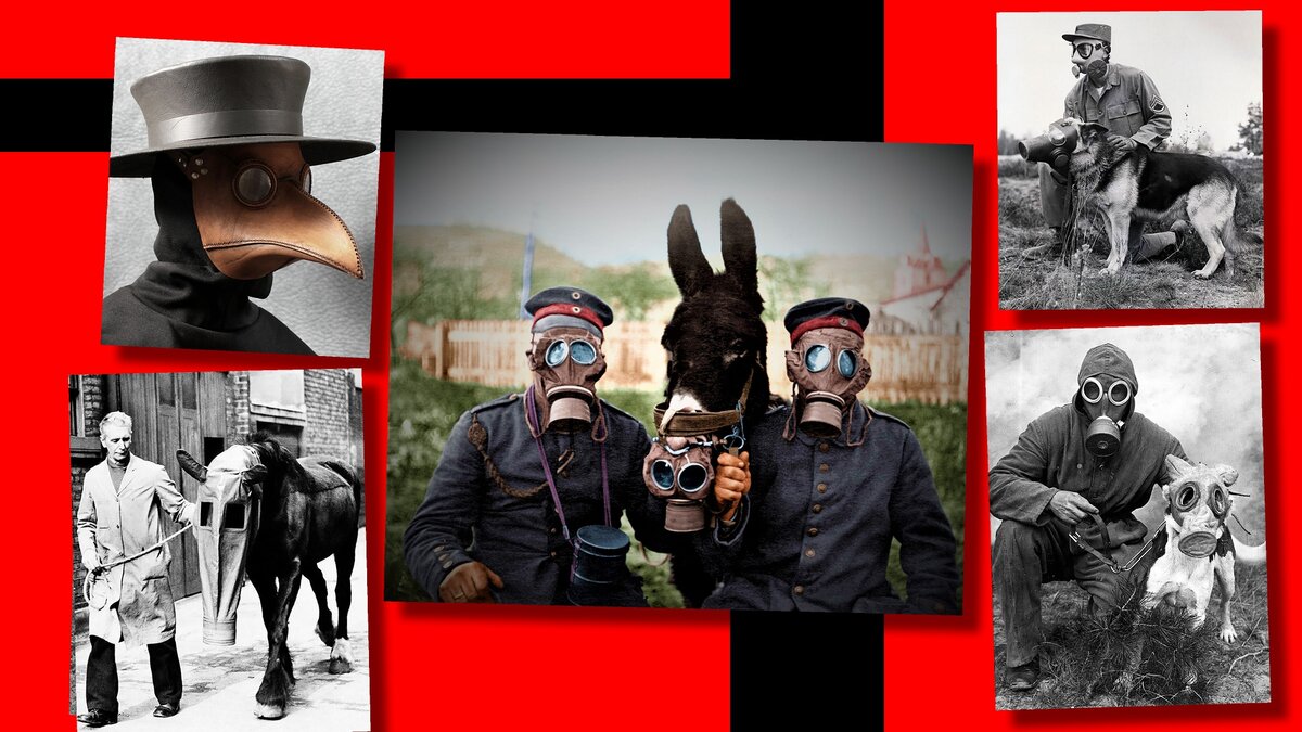 Во время Первой мировой не редкостью были противогазы для защиты полезных вьючных животных — лошадей, волов, ослов.