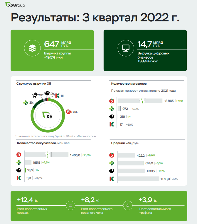 🟢 И вот как раз оставшиеся 7% роста дали новые магазины, +448 новых в 3 кв. 2022 года (с учетом закрытий)