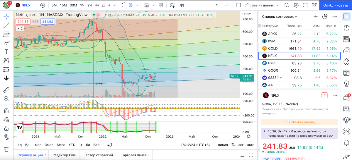 завтра отчет Netflix , мы видим как акция за 2022 год просто рухнула на дно , цена акции достигла уровня 0,75 ,еще в конце 2021 - начале 2022 года цена была 00 долларов 🔥, вышел отчет в январе , где нетфликс не опрадал свои собственные ожидания , но и не оправдал прогнозы аналитиков , я вовремя сняла видео и выложила на свой канал на ютубе , смотри тут (https://youtu.be/j9Phs-JIwDM) что имеем сейчас держим уровень восходящего тренда 0,75 , многие аналитики считают что их реклама для подписчиков вырастет в третьем квартале , но выручка может замедлиться , подписчики вырастут до 1 миллиона и дадут 221 ,6 млн подписчиков 🔥, джут выручку 7,8 млрд долларов , что увеличится на 5% год к году , но снизится на 2% квартал к кварталу , и за 4 года темпы роста нетфликс будут около 4% , но у нетфликс есть рекламные планы , с 3 ноября компания запускает 6,99 плату в месяц , базовый план -без рекламы 9,99 в месяц !!! премиум будет 19,99 , и есть такое мнение что подписка будет только расти , с уче