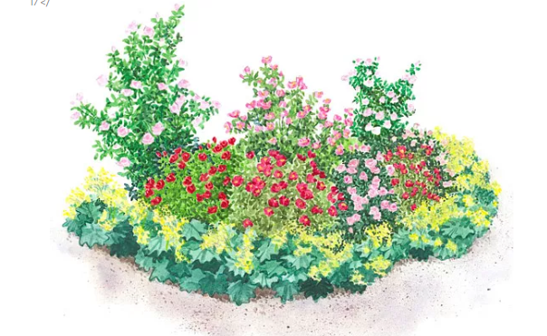 Клумба подбита манжеткой мягкой. Сорта Робуста, Триллер, карликовая Минима.