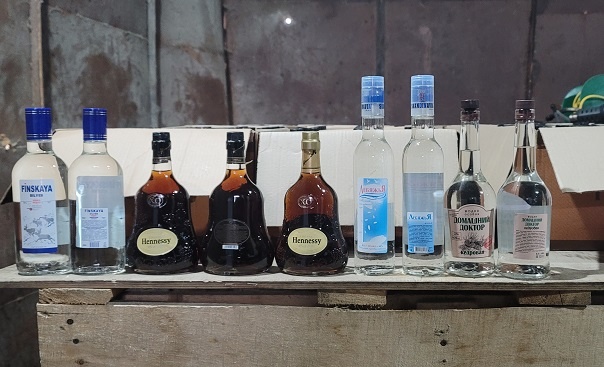Обнаружено и изъято: более 1330 бутылок контрафактной водки и коньяка, около 1800 литров спиртосодержащей жидкости, 1 кустарная линия розлива и более 3000 единиц стеклотары.