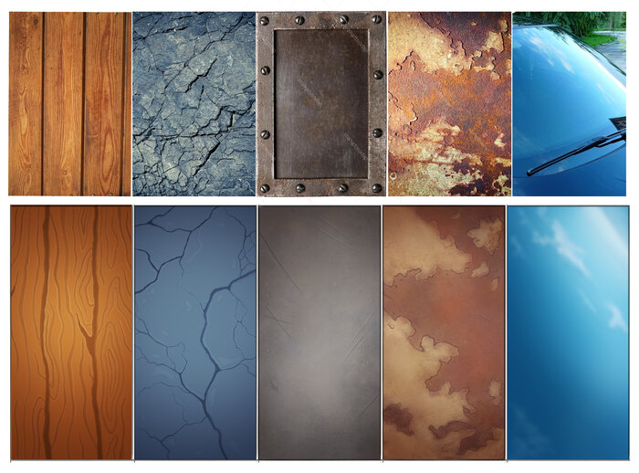 Привет! На одном из уроков мы рисовали разные материалы. На первом этапе нужно было по референсам нарисовать материал. Не точь-в-точь, но повторить характерные черты (трещинки, фаски и т.д.) Далее нужно было изобразить разные материалы на болванках (кубик/шарик): Пластик и камень: Металл, дерево и стекло: Шарики: матовый, стеклянный, глянцевый: Общий вид: Спасибо за внимание:)