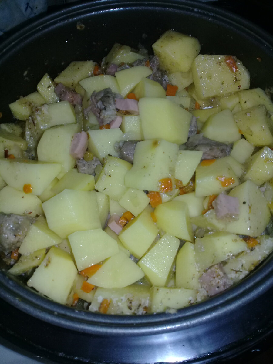 Всем доброго времени суток! навалилось на меня в последнее время.... Смерть брата, проблемы с его долгами, с квартирой его... Желания писать совсем не было. Из статьи за 7-е октября: Планировала готовить (ну это кроме уборки, стирки, глажки): 1) Жаркое в мультиварке 2) Скумбрия с маслом и луком - две скумбрии уже лежали и ждали своего часа с прошлых выходных. Так руки до них и не дошли. 3) Морковь по-корейски - уже третьи выходные планировала, но не успевала... 4) Салатик (огурцы, ветчина, яйца, кукуруза, сыр твердый, майонез) 5) Борщ со свеклой - любимое первое блюдо мужа и сына 6) Еврейская закуска - это любим мы все - и так есть, и на хлеб намазать. 7) Компот - компот собиралась готовить из остатков "жома" после того, как варила с соковарке сливовый сок. Я его в пакеты разложила и заморозила. 8) ребра в духовке - ребра тоже лежали в морозилке. От свинины, которую в "Светофоре" покупала, остались. Что успела приготовить в субботу после уборки: 1) жаркое в мультиварке Нам нужно: