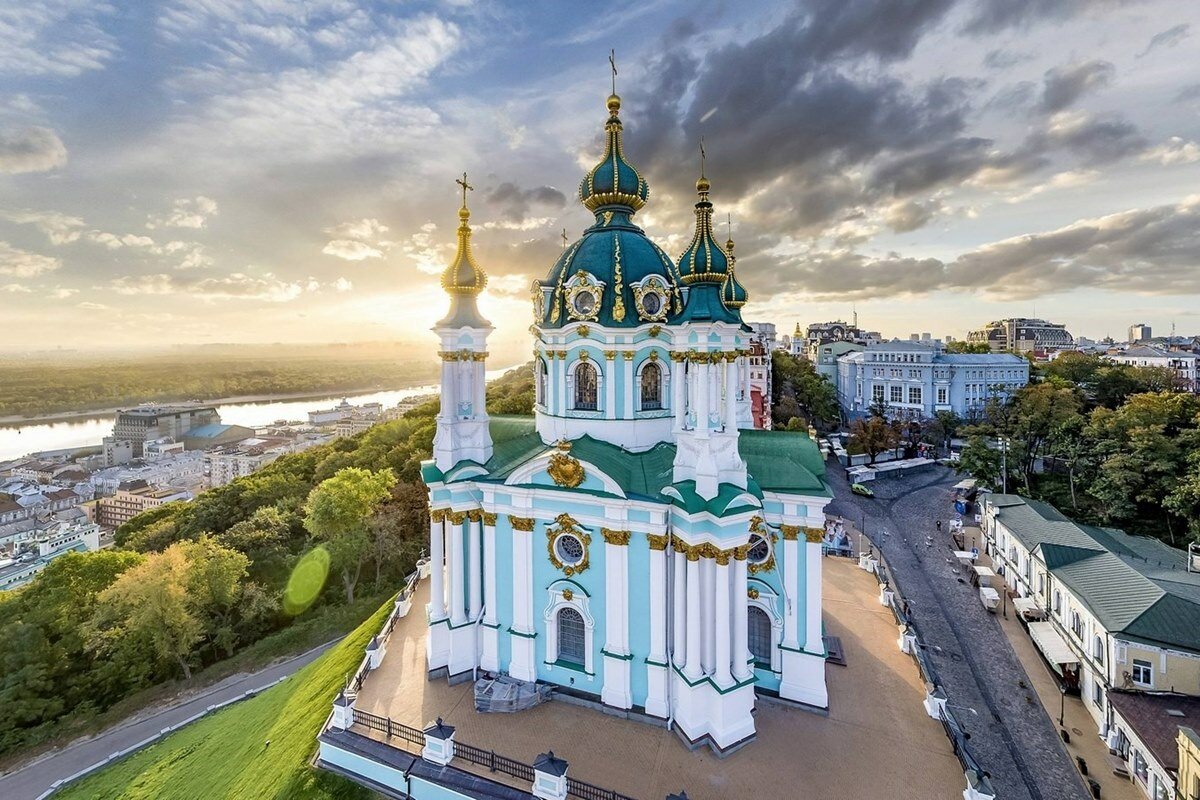 Андреевская церковь в Киеве, арх. Растрелли, 1749—1754 гг. (имп. Елисавета). По преданию, на этом месте ап. Андрей воздвиг крест.