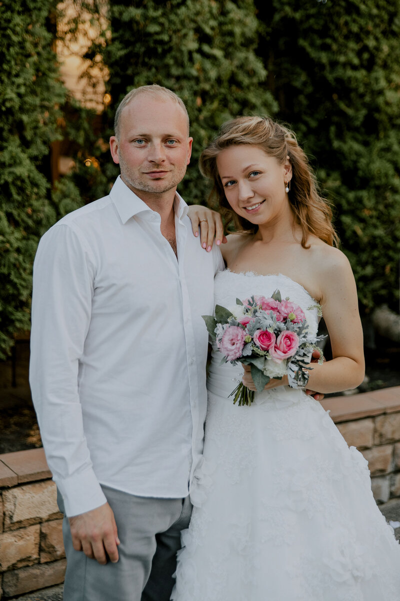 "Розовая Свадьба" - 10 лет супружеской жизни. Молодожены: Константин и Наталья Сусловы. Ведущий: Сергей Завьялов. Церемония встречи "Розовых" молодоженов: Для этой цремонии, лучше всего подходят маслины. (Оливы.) Во первых: Маслина - род вечнозелёных деревьев, что символизирует вечную супружескую, счастливую жизнь. Во вторых: Маслиничные деревья, набирают максимально высокую урожайность в десятилетнем возрасте, что тоже символично. И в третьих: Маслины содержат множество полезных веществ. Семейная жизнь тоже. Главный символ праздника - Розовое вино. Розовый - цвет торжества. Вино - вкус жизни, кружит голову и приятно бодрит. Магия торжества: Маслины, вино, лепестки роз, всё это второстепенно по отношению к белому Свадебному платью "Невесты". Именно в нём, 10 лет назад, Наталья выходила замуж. (Какая хозяйственная девушка, сохранила платье. Обычно хранят только фату.) Кстати, существует твёрдое убеждение, если дотронуться до платья десятилетней выдержки, предварительно загадав ж