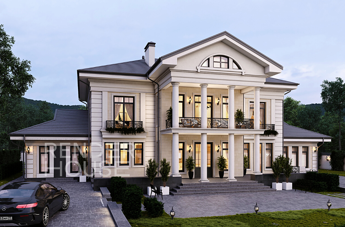 ΠΠ»Ρ ΠΎΡΠ΄Π΅Π»ΠΊΠΈ Π²ΡΠ±ΡΠ°Π½ ΡΠ»Π΅Π³Π°Π½ΡΠ½ΡΠΉ ΠΊΠΎΠ½ΡΡΠ°ΡΡ ΡΠ²Π΅ΡΠ»ΡΡ ΡΠ°ΡΠ°Π΄ΠΎΠ² ΠΈ ΠΊΠΎΠ»ΠΎΠ½Π½ β ΠΈ ΡΡΠΌΠ½ΠΎΠ³ΠΎ ΠΏΠΎΠΊΡΡΡΠΈΡ ΠΊΡΡΡΠΈ, ΡΡΠΌΠ½ΡΡ ΠΎΠΊΠΎΠ½Π½ΡΡ ΡΠ°ΠΌ, Π΄Π²Π΅ΡΠ΅ΠΉ ΠΈ ΠΊΠΎΠ²Π°Π½ΡΡ ΠΎΠ³ΡΠ°ΠΆΠ΄Π΅Π½ΠΈΠΉ. ΠΡΠΎΡ ΠΊΠΎΠ½ΡΡΠ°ΡΡ, Π° ΡΠ°ΠΊΠΆΠ΅ ΠΌΠ½ΠΎΠΆΠ΅ΡΡΠ²ΠΎ ΠΎΠΊΠΎΠ½, ΠΏΠ»Π°Π²Π½ΡΠ΅ ΠΈΠ·Π³ΠΈΠ±Ρ ΠΊΠΎΠ²ΠΊΠΈ ΠΈ ΡΡΠ°Π½ΡΡΠ·ΡΠΊΠΈΠ΅ Π±Π°Π»ΠΊΠΎΠ½Ρ Π½Π° ΡΠ°ΡΠ°Π΄Π΅ ΠΏΠΎΠ΄ΡΡΡΠΊΠΈΠ²Π°ΡΡ ΡΠΈΠ»ΡΡΡ Π΄ΠΎΠΌΠ° ΠΈ ΠΏΡΠΈΠ΄Π°ΡΡ Π΅ΠΌΡ Π²ΠΈΠ·ΡΠ°Π»ΡΠ½ΡΡ Π»ΡΠ³ΠΊΠΎΡΡΡ ΠΈ ΡΡΠΎΠ½ΡΡΠ½Π½ΠΎΡΡΡ.