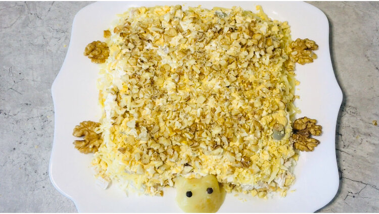 Часто готовлю на праздничный стол салат "Черепаха" с курицей, яблоками и грецкими орехами
