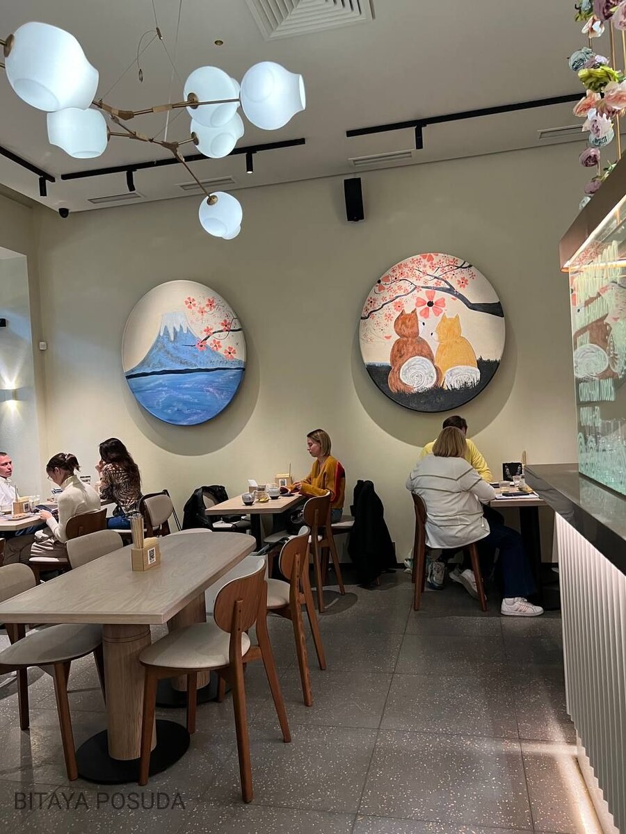 Простой интерьер в светлых тонах с инстаграмным декором - максимально непривычно для традиционных кафе с японской кухней. Именно это является их отличительной чертой (никакого сходства с Тануки или Якиторией). Современное городское кафе, это прям очень импонирует. 🤩Изучите меню: