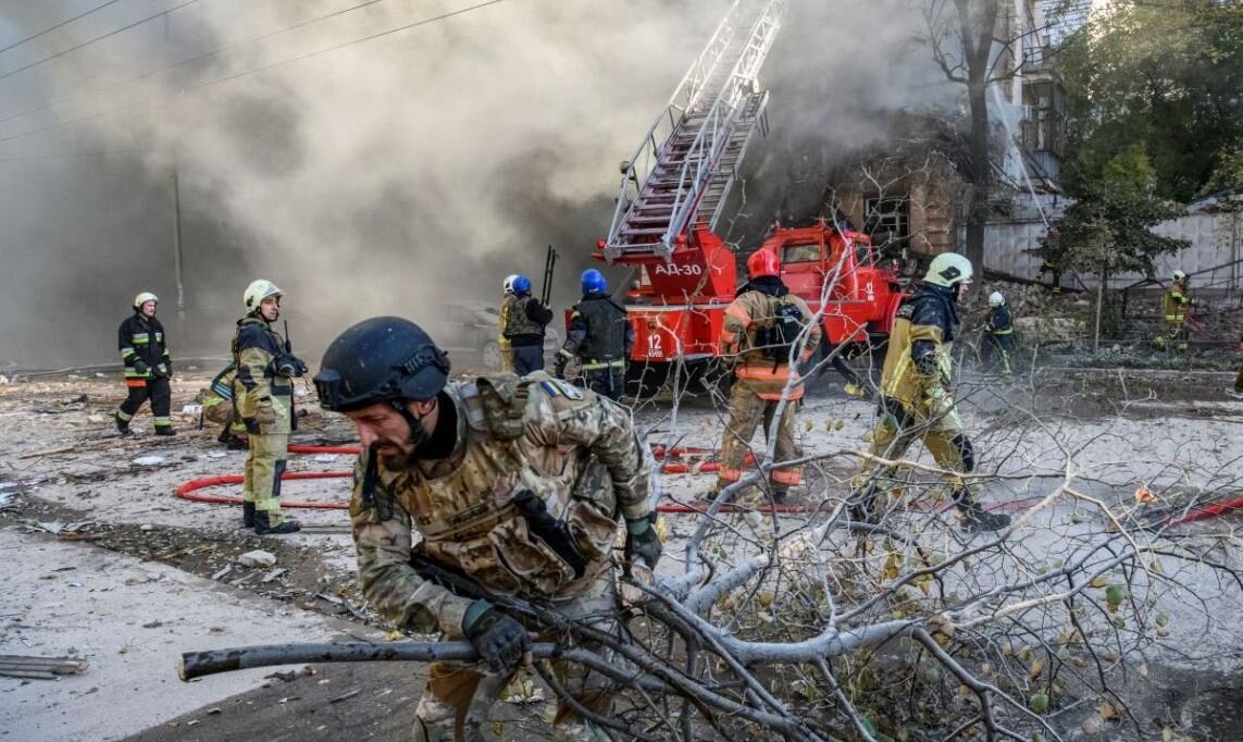 Американцы успокаивают украинцев: «Мы будем с вами столько, сколько нужно» Раннее утро 17 октября изрядно испортило настроение киевлян. Инфраструктура украинской столицы вновь оказалась под ударами дронов-камикадзе. Кличко насчитал 28 беспилотников. Точечные удары наносились также по Сумам, Очакову, Днепропетровску Харькову, а плотной бомбардировкой были захвачены Одесса и Николаев. Блэкауты были отмечены в Днепропетровске и Харькове, где опять на несколько часов останавливалось метро. В районе Николаева было уничтожено хранилище топлива для военной техники ВСУ, разрушена ремонтная база возле поселка Березнеговатое. Пострадали объекты инфраструктуры в Роменском районе Сумской области. Сумская область И всё же при таком широком спектре ударов внимание мировых СМИ было обращено в первую очередь на Киев, где отчётливо ощущался хаос. Утром было перекрыто движение транспорта на участке между Крещатиком и цирком, по городу постоянно передвигались пожарные машины. Зеленский выступил с заявлен