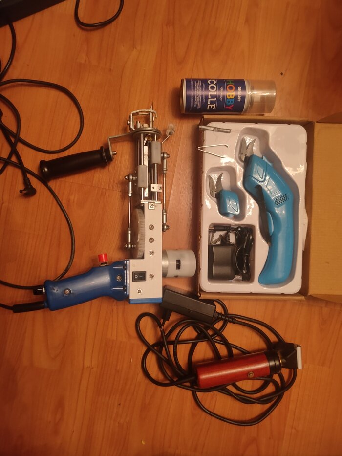 Всем привет! Очень приятно был удивлен активностью под прошлым постом)) Огромная благодарность тем кто поддержал в комментариях. Как и обещал, сегодня пост про основные этапы процесса. Начнем же) Для начала кратко расскажу про инструменты которыми я пользуюсь. Первый на очереди и самый главный инструмент это тафтинговый пистолет, без него я бы не сделал ни одного ковра. Обычная машинка для стрижки. В коробе лежит машинка для контуринга либо в отсутствии таковой очень выручают ножницы. Клей спрей, для проклеивания задней части ковра (для подложки) Так же вот такой клей использую для проклейки задней части, дабы ворс не распался. И последнее, но не по значимости Пинцет, для вытягивания лишних ниток И Самодельный нитковдеватель для тафт гана. Когда все инструменты есть, можно приступать к работе Для начала нужно натянуть ткань на которой будем бить ковер. У меня размер каркаса 155х120см. Обязательно нужно отзеркалить рисунок который хотим делать, так как сам ковер на ткани будет с обратно