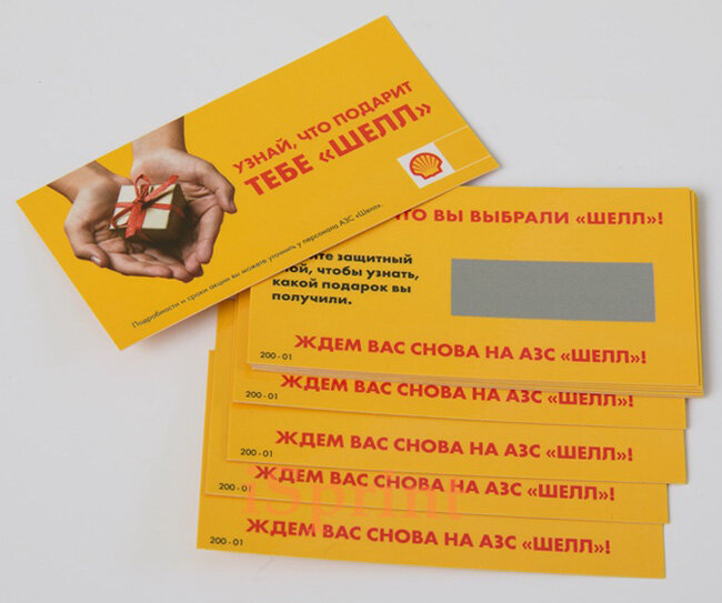 Если вам предстоит провести промо-акцию или рекламную лотерею, розыгрыш приятных сюрпризов вам обеспечит применение скретч-карт - карт из картона или пластика с нанесённой на них (под защитным непрозрачным и стирающимся слоем) некой секретной информацией. Название происходит от английского слова «царапать» (scratch). Но кроме розыгрышей такие карты применяются во всех направлениях бизнеса, где клиенту продается код доступа к предоплаченным услугам – например, при предоставлении услуг телефонии различных видов (фиксированной, сотовой, IP). В зависимости от дальнейшего применения выбираем материал для нанесения секретного слоя. Если вам предстоит розыгрыш, картонные карты вполне подойдут – они немного уступают пластику в жесткости, но достаточно надежны для разовой акции, а кроме того, у них будет оптимальная цена изготовления для такого мероприятия. Если вы планируете продавать карты с кодовой информацией для получения услуг, конечно, более надежна пластиковая основа – исходя из более т