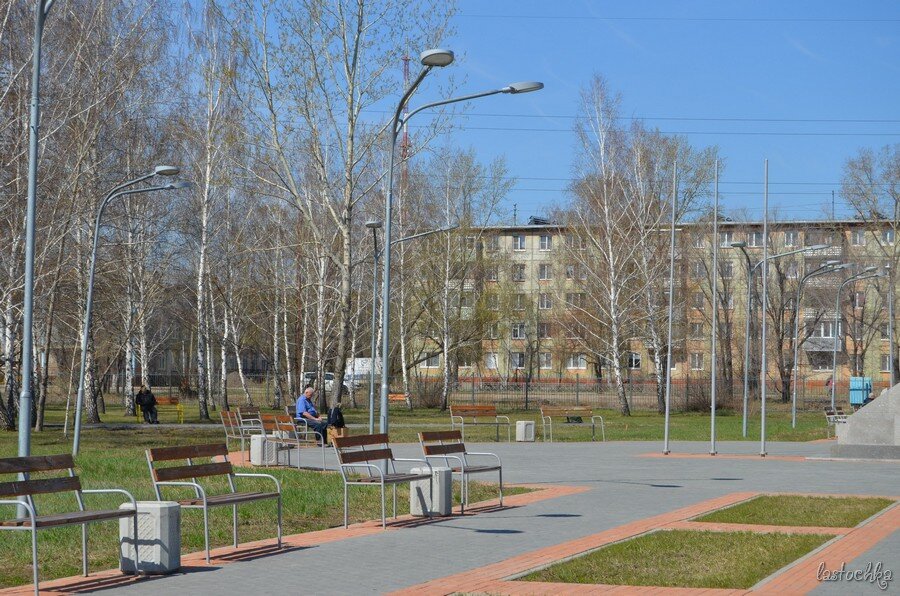 Вот эта часть сквера мне особенно понравилась. Здесь берёзы и какая-никакая тень. В центре же довольно пусто, солнцепёк.