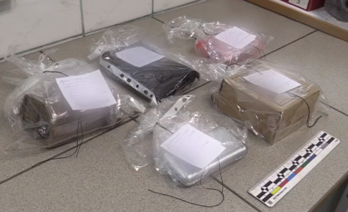 Там были обнаружены и изъяты весы, упаковочные материалы, предназначенные для фасовки наркотиков, банковские карты, а также три полимерных пакета с различными видами запрещённых веществ, а именно с гашишем, N-метилофедроном и кокаином. Общая масса изъятых наркотиков на обыске составила почти полкилограмма.