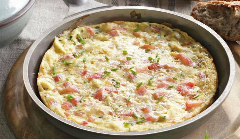 Ингредиенты: - Помидоры – 3 шт. - Лук репчатый 1 шт. - Базилик - 4–5 листиков - Оливковое масло - для жарки - Масло сливочное – 1 ст. л. - Яйцо – 6 шт. - Сметана – 2 ст. л. - Черный перец, соль - по вкусу Приготовление: 1. Удалите кожицу с помидоров. Затем разрежьте их, удалите сок и семена. Лучше всего это делать чайной ложкой. 2. Нарежьте мякоть помидоров средними кусочками. Мелко нарежьте очищенную луковицу и базилик. 3. Разогрейте в сковороде 2 ст. л. оливкового масла в смеси со сливочным. Положите лук и обжаривайте на среднем огне 5–7 мин. 4. Добавьте помидоры и базилик. Посолите и поперчите. Когда лишняя жидкость испарится, снимите сковороду с огня. 5. Взбейте яйца,добавьте содержимое сковороды. Разогрейте на сильном огне смесь 1 ст. л. оливкового масла со сливочным. Вылейте на сковороду яично-помидорную смесь. На сильном огне готовьте 5 мин.