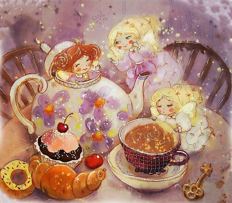 А рядом с каждым членом семьи, поблескивая золотой каймой, стояли чашечки. Белые, тонкой работы, как будто ракушки, выловленные из моря, они светились изнутри налитым крепким чаем. Золотые нити-паутинки ложились на белый фарфор, расчерчивая его на игривые ромбики.