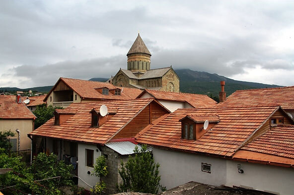 Начну с того, что бронируя за несколько месяцев до поездки жильё в Грузии, я поняла, что это путешествие будет самым бюджетным из всех наших 8-и самостоятельных зарубежных автопутешествий. Возможно, если ехать в высокий сезон или бронировать за месяц до путешествия, всё будет по-другому, но я бронировала за 8 месяцев, поэтому, почти все гостевые дома достались мне с большими скидками, а лучший гостевой дом из всей нашей поездки оказался самым недорогим (50 лари за номер со всеми удобствами - это примерно 1250 рублей, в России таких цен нет). Планируя поездку в какой-нибудь незнакомый интересный город всего на один день, я стараюсь сделать так, чтобы место ночёвки было в самом центре города или как можно ближе к нему. Гостевой дом Mtskheta-Kapanadze в этом смысле расположен просто идеально - на пешеходной улице в 3-х минутах ходьбы от Кафедрального собора Светицховели. Туда пускают только автомобили местных жителей. Мы на одни сутки стали "своими" и подъехали к нашему гостевому дому. И