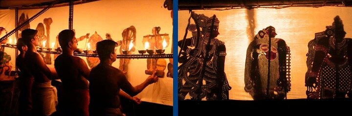Спектакли театра «толпава кутху» («спектакль кожаных фигур») южноиндийского штата Керала посвящены богине Бхадракали и рассказывают о жизни царевича Рамы от его рождения до коронации. Плоские театральные куклы изготавливаются из кожи различных животных и приводятся в движение с помощью бамбуковых или тростниковых палок, а в качестве экрана выступает плотно натянутая белая ткань с подсветкой. Сцена освещается двадцать одной лампой из половинок кокосовых орехов, спектакль сопровождается игрой на различных музыкальных инструментах. Основными являются два барабана, тарелки, раковина и браслеты на щиколотку. Кроме них по специальным случаям используют гонг и короткую трубу.