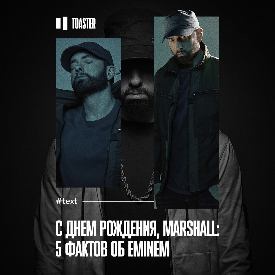 Вчера свой день рождения отмечает исполнитель, которого в пору называть синонимом хип-хопа, Eminem. Маршал настолько известен, что у многих слушателей может сложиться впечатление, будто они действительно знают о нем все, начиная от его многочисленных регалий и достижений и заканчивая самыми темными страницами его биографии, о которых вам расскажут и без нас. Мы же предлагаем посмотреть на Мэтерса немного с другой стороны, сквозь призму не самых известных фактов о нем. Погнали! 1. Несмотря на то, что Em обладает одним из самых обширных словарных запасов в хип-хоп коммьюнити, он никогда не увлекался учебой и терпеть не мог читать. По его словам, у него были огромные проблемы в школе, из-за чего он несколько раз безуспешно пытался закончить 9 класс. А с художественными книгами все было еще хуже – за всю жизнь он прочитал лишь одну «Make My Own Rules» LL Cool J. Зато словари в поисках новых словечек он чекает исправно. 2. Для большинства фанатов хип-хоп культуры Eminem и 2Pac – персонажи