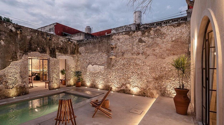 Они оставили сохранившийся каркас нетронутым. А взамен уничтоженной части добавили похожие бетонные пристройки. Архитектурная фирма 20Diezz Arquitectos превратила старый колониальный дом 19-го века в современное жилье. Оно расположено в историческом центре мексиканской Мериды, сообщает Designboom. У дома сохранилась большая часть фасада. Архитекторы решили оставить открытым историческую конструкцию и детали и соединить ее с новыми пристройками. В целом, по словам авторов, это была попытка найти гармонию между ними. Каркас для новых комнат изготовили из бетона, который покрыли светло-коричневой краской. Он хорошо сочетается с оригинальной каменной конструкцией. Для центрального мини-двора изготовили на заказ плитку из местного камня. Часть внутренней планировки авторы изменили. Вместо нескольких вестибюлей сделали дополнительные спальни. Другую часть не тронули. Оставили несколько коридоров, сохранили расположение главной спальни, столовой, кухни и большой гостиной. В минималистичном ин