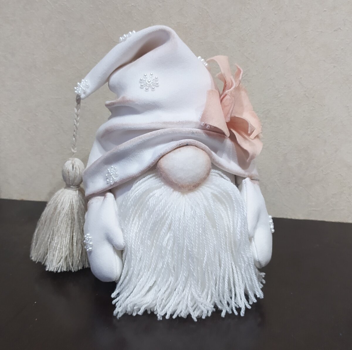 На улице ещё осень, но зима и новогодние праздники неумолимо приближаются. Предлагаю начать подготовку к этому яркому периоду. Степень сложности ⭐⭐ 1. Начнем с эскиза. 2. Для работы я буду использовать остатки кашемира молочного цвета (прекрасно подойдёт любая плотная и мягкая ткань). Выполним раскрой гнома 3. Сошьем детали по намеченным линиям (можно ручным способом - швом "назад иголка", можно соединить детали машинным способом). 4. Изготовление туловища. Вырежем дополнительную деталь - дно туловища. Деталь туловища присборим и соединим с деталью дна (не забудьте наполнить туловище синтепоном). 5. Изготовление рук. Выполняется не сложно по фотографиям. 6. Изготовление бороды. Бороду можно сделать из меха или ниток для вязания. 7. Изготовление носа. Вырезать круг. По краю его собрать и стянуть, заполнив синтепоном. 8. Соединить детали гнома. 9. Для колпачка сделать кисточку. 10. Надеть колпачок, расположив его красивыми складочками (можно закрепить термоклеем). 11. Пастелью или т
