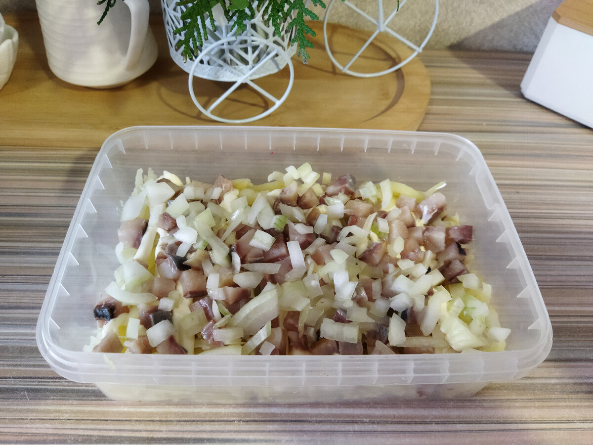 Впервые этот бюджетный салат попробовали посетители ресторана в 1919 году. В настоящее время все ингредиенты для данного блюда легко найти в любом магазине, а иногда и вырастить у себя на огороде. Ещё нам понадобится сельдь (солёный/копчёный на ваше усмотрение) и майонез, который, кстати, можно легко и быстро сделать в домашних условиях. И, конечно, мой секретный ингредиент - это отварные яйца (5-6 штук). Именно с ними этот салат получается более воздушным и нежным. Овощи и яйца отвариваем и натираем на тёрке. Селёдку мелко нарезаем, убирая все косточки. Формируем салат. Для этого можно брать как плоское блюдо, так и глубокое. Я этот салат делаю в несколько маленьких контейнеров, которые можно закрыть и легко хранить в холодильнике. Или, даже взять на работу. 1 слой - картофель 2 слой - рыба с луком (репчатым или зелёным) 3 слой - морковь 4 слой - белок от яиц 5 слой - свекла Майонезом пропитывать каждый слой не стоит. Достаточно 2-3 слоя. И в завершении посыпаем тёртыми желтками. По