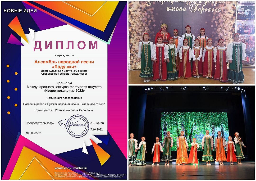 Так вот эти наши «Птички» принесли нам Гран-При на Международном конкурсе-фестивале искусств «Новое поколение 2022» в своей возрастной группе 8-14 лет.