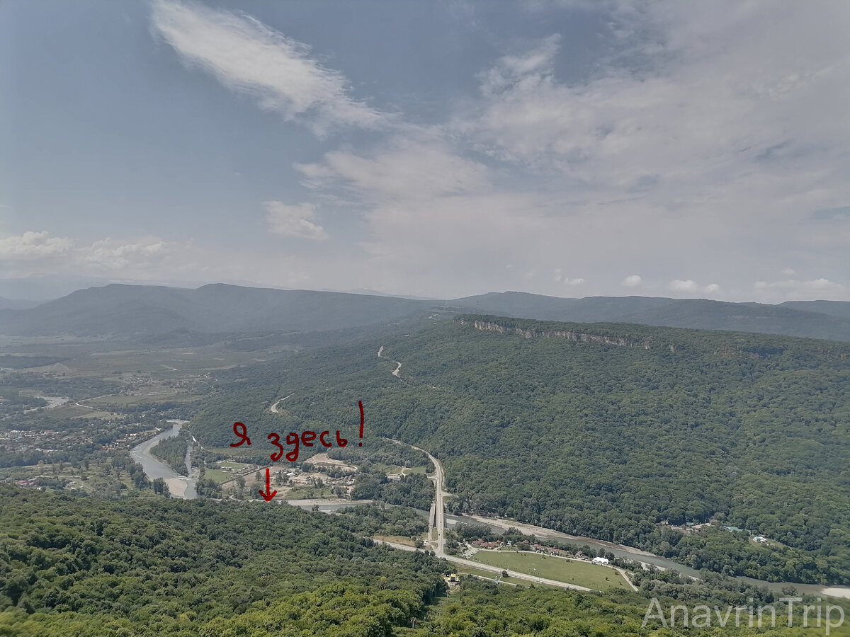 ПризнаЮсь. При сборах вещей для авто-поездки в Адыгею, помимо обязательного снаряжения дивана, картины, корзины, картонки и маленькой собачонки, прихватил с собой и спиннинг. Хотелось не только увидеть главную реку Адыгеи – Белую, но и попробовать на ней половить. По описаниям, в реке водится голавль, судак, щука, лещ ... даже есть шанс поймать форель. Короче – рыбалка стала одним из запланированных мероприятий. Рассказываю, что из этого в итоге из этого получилось... В один из дней вся наша компания, за исключением вашего покорного слуги – автора канала AnavrinTrip – направилась на подъемнике искать местную достопримечательность – "Чертов палец". Место (по рассказам) оказалось классным, особенно открывающиеся с него виды По расчету прогулка должна была занять у них 3 часа. Как там в песне Кипелова: "Я свободен... !" В городом одиночестве и хорошем настроении я направился порыбачить на давно присмотренное место неподалеку – возле моста через реку. Вид на реку с моста и место предполаг