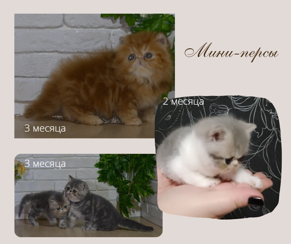 Первое поколение кросса мини-персов дает в помете как нормальных, так и мини и микро-котят, которые, как и те мини-коровки чрезвычайно проблемные - очень слабый иммунитет, долго незарастающие роднички и чрезвычайно выраженные швы сращения костей черепа. В остальном эти микро-кошки очень пропорциональны. В следующих поколениях от 2 кошек-кошек появления крупных особей не наблюдалось, но микро-котята регулярны.