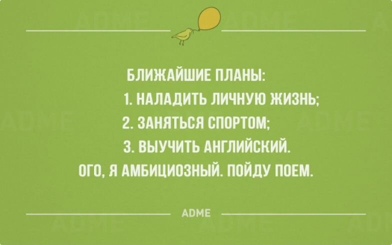 Без бумажки с планом 😂 Как перестать саботировать свои стремления? Сколько уже можно - берёшься за дело, сначала чувствуешь подъем, потом сдуваешься, а затем и вовсе бросаешь начатое 😏 СОСТАВЬТЕ ПЛАН У вас должен быть план ежедневных задач, которые будут показывать вам, что вы движетесь в правильном направлении. Как вы понимаете, задача должна быть действием. Перестать кусать губы - не подойдёт. Почему? Потому что вы не сможете это выполнить. Вы куснете в забывчивости свою губу и что дальше - поставите прочерк у себя в блокноте? Типа, пункт не выполнен? Ну и куда вы дальше поедете с таким негативом? «Не, это сложно, наверно я не смогу», подумаете вы. И бросите все к чертям. Значит в плане должно быть действие, которое вы выполняете ежедневно. Моя подруга, например, придумала классное действие для ослабления своего контроля. Она выходит на пробежку без очков и бегает практически наощупь. Добьётся она своей цели? Конечно! Сначала психика привыкнет к отсутствию контроля на пр