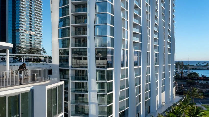 Чикагская студия Studio Gang завершила жилую башню на Гавайях под названием Kō'ula с волнообразным фасадом, вдохновленным местной экологией. Ко'ула, что в переводе с гавайского означает «красный сахарный тростник», представляет собой местное растение с извилистой структурой, которое оказало большое влияние на фасад башни. Studio Gang взяла извилистую структуру завода и применила ее к фасаду, чтобы из окон 41-этажной башни открывался максимальный вид на близлежащий океан. «Мы разработали Kō'ula, чтобы познакомить жителей с впечатляющей природной экологией Гонолулу», — сказала партнер-основатель Studio Gang Жанна Ган. «Жилые помещения слегка отделяются от ядра здания к береговой линии, чтобы захватить виды от маука до макаи, и каждый дом выходит на улицу на просторную веранду, которая круглый год привлекает свежий воздух и естественный свет». Студия приняла форму ланаи — крытых веранд, обычных на Гавайях, — чтобы сообщить о серии встроенных террас, которые проходят по фасаду здания. Чтоб