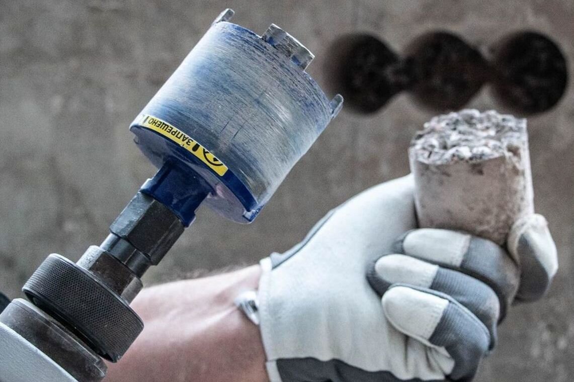 Использование алмазных коронок – самый простой и удобный способ формирования отверстий для подрозетников. Сегодня, мы проанализируем несколько популярных коронок от разных производителей и определимся, в каких случаях лучше выбирать ту или иную модель. 1. Открывает наш обзор коронка Diamond Hit (DH-D400), российского производителя ГК «АДЕЛЬ». Модель диаметром 68 мм имеет 6 режущих сегментов высотой 10 мм и предназначена для сверления «всухую» с применением системы микроудара. Эта коронка выпускается с 3 видами хвостовиков – SDS MAX, SDS PLUS, а также с обычным шестигранником. Diamond Hit справляется с сверлением армированного бетона, бетонных блоков, кирпича, газо- и пенобетона. Цена: 4500 рублей, с дополнительными хвостовиками разных типов – 5500-5700 рублей. 2. Коронка MASTERLINE от южнокорейского производителя DIAM предназначена для «сухого» проделывания отверстий в стенах из кирпича, неармированного и слабоармированного бетона в безударном режиме. Коронка диаметром 68 мм имеет 4
