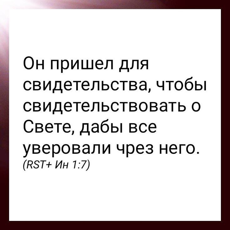 «Был человек, посланный от Бога; имя его Иоанн. Он пришёл для свидетельства, чтобы свидетельствовать о Свете, дабы все уверовали через него. Он не был Свет, но был послан, чтобы свидетельствовать о Свете» (Ин. 1:6-8).