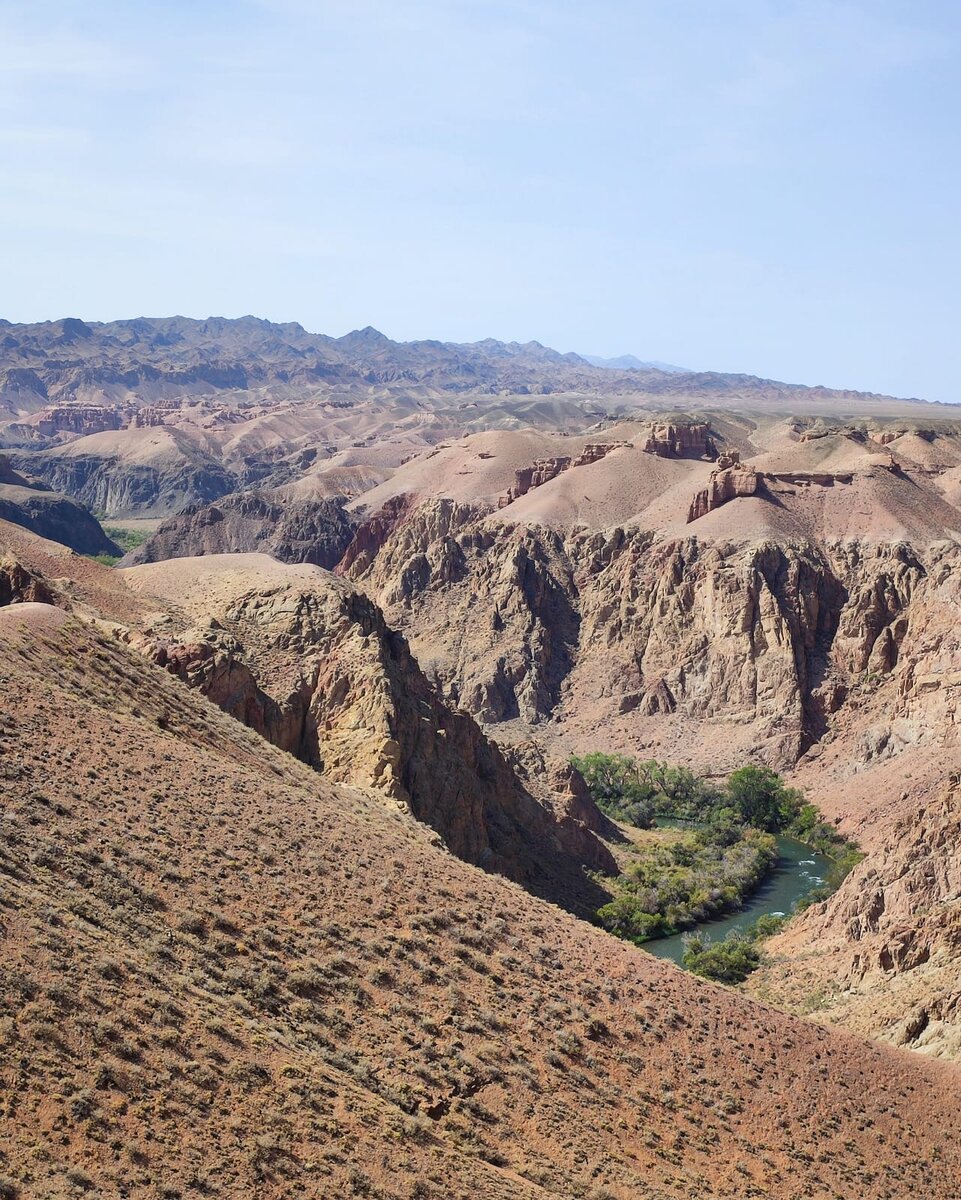 Если куда и можно спуститься вниз на своей машине, то это «Малый Каньон» - сухое русло ручья Бестамак, на правом берегу реки Чарын. Малым каньон называется не только за свои не очень большие размеры, но и протяженность. Каньон включает в себя все разновидности пород и архитектурных форм и образов, которых присущи каньону Чарын. Это Чарынский каньон в миниатюре. Являясь естественным руслом для дождевых осадков, каньон петляет в разрушающихся породах и соединяется в итоге с основным каньоном реки Чарын. Начавшись на равнине с небольшого и широкого русла, каньон внезапно сужается и проваливается сквозь твердые скальные породы, образуя коридор в окружении стен сложенных из блоков огромных размеров. Пока идешь внутри каньона, хочется доставать фотоаппарат кажется 30-50 метров, встречая каменные статуи, как на острове Пасха. Оказавшись в этом каньоне, начинаешь ощущать все величие земной геологической истории. Поэтому каньоны всегда вызывают у человека трепет перед работой природы, котор