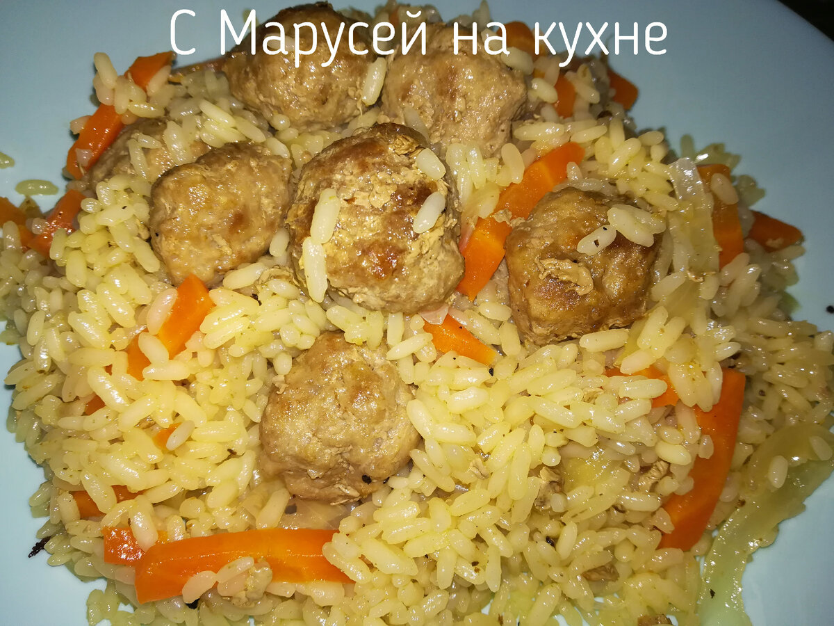 Доброе время суток дорогие Друзья! Сытное и вкусное блюдо из фарша, которое готовится сразу с гарниром. Для этого блюда я предпочитаю брать смешанный фарш свинина-говядина, а рис пропаренный. *** Нам нужны продукты : ФАРШ МЯСНОЙ - 500 ГРАММ ЛУК РЕПЧАТЫЙ - 1 ШТУКА МОРКОВЬ - 1 ШТУКА СЛИВОЧНОЕ МАСЛО - 20 ГРАММ РИС - 1 СТАКАН СОЛЬ - ПО ВКУСУ СПЕЦИИ - ПО ВКУСУ РАСТИТЕЛЬНОЕ (ОЛИВКОВОЕ) МАСЛО - 2 СТОЛОВЫХ ЛОЖКИ ВОДА - 2 СТАКАНА *** Добавляем в фарш немного соли и часть специй, перемешиваем и делаем небольшие фрикадельки. В сковороду наливаем растительное масло и обжариваем фрикадельки до румяности, затем вынимаем их и кладём в тарелку. Морковь режем брусочками, а репчатый лук перьями. Обжариваем их в сковороде, где жарились фрикадельки, около 5 минут (постоянно помешивая) на среднем огне. Рис хорошо промываем и отправляем в сковороду к овощам. Добавляем соль и специи по вкусу. Заливаем воду, накрываем крышкой, убавляем огонь и тушим 10 минут периодически помешивая. Перекладываем фрика