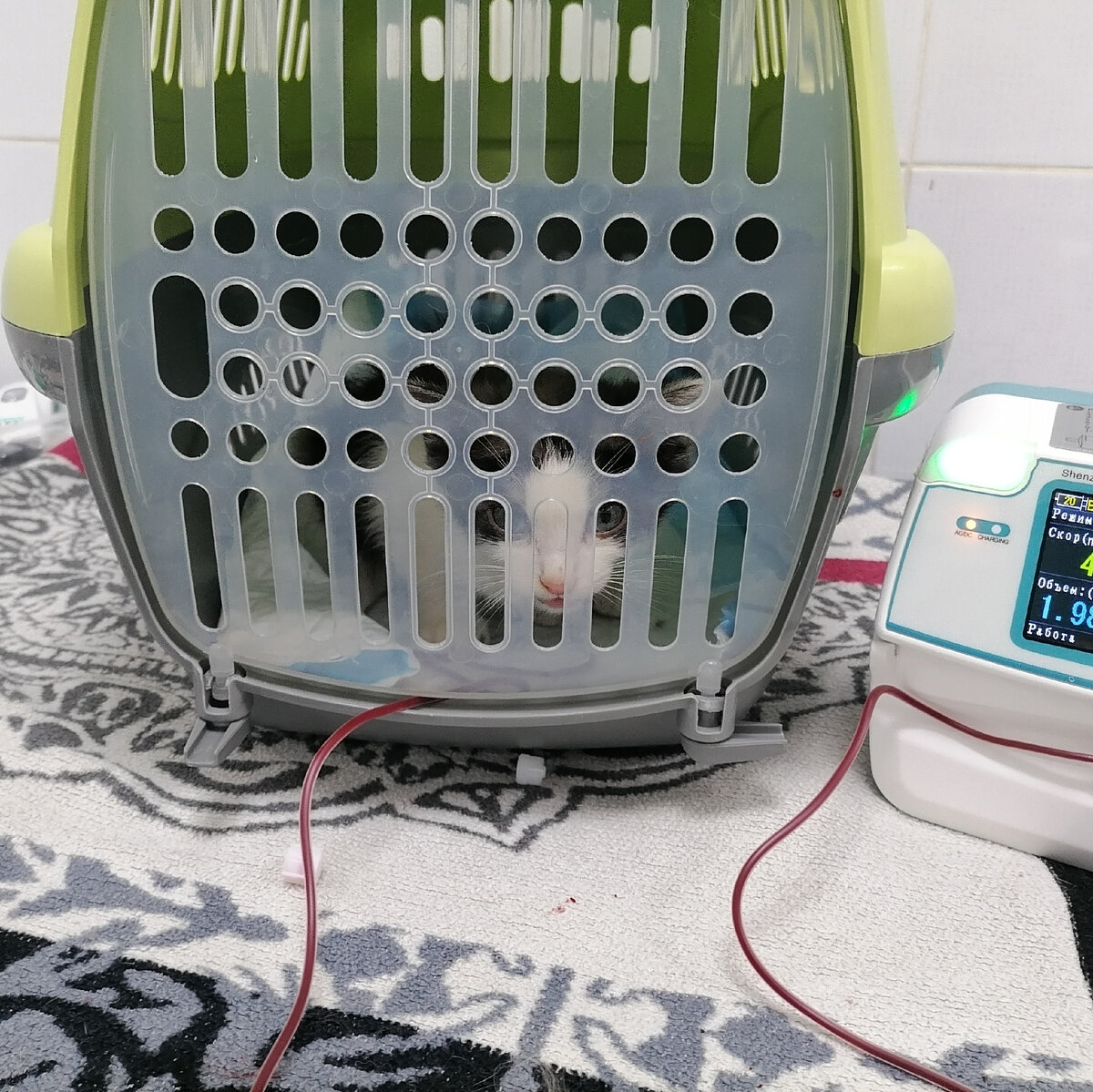 У котейки прогрессировала анемия и пришлось провести переливание.