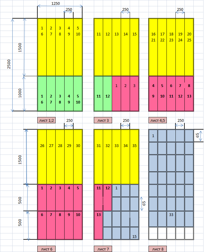 Рациональный раскрой листов 2,5 х 1,25 м.